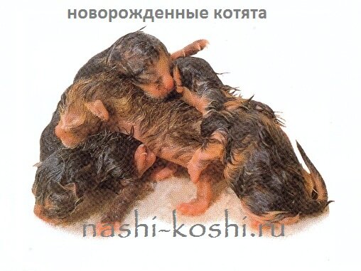 Кошка затрачивает колоссальные усилия, чтобы произвести на свет большой выводок, поэтому ей нужен последующий отдых в течение 12-24 часов. Новорожденные котята совершенно беспомощны. Если нет никаких осложнений, котята должны оставаться при матери. Вес новорожденного котенка 90-100 граммов