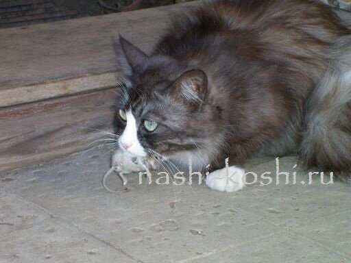Моя кошка ловит мышей, птичек, летучих мышей, белок. Думаю и с крысой справится. Вкусное выедает сама, нам приносит, то, что осталось. Но бывает добычу приносит полностью. Выловила всех мышей на даче, в сквере около дома. Отлично ладит со спаниелем Джиной, с которой устраивают кутерьму дома и на улице. Обоим лет по десять. Когда бездельничают, стараются держаться рядом со мной.