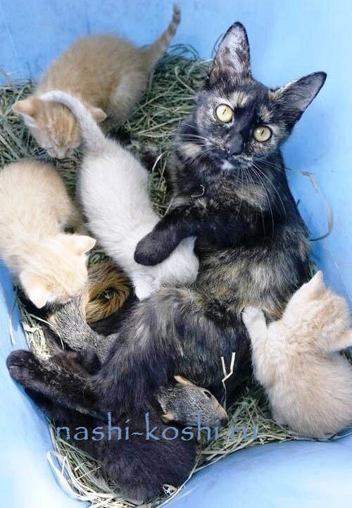 Ну кошки, ну молодчинки! Истинные сердобольные мамочки. Побольше бы таких людей, а то мам-кукушек развелось!!! А правда, ежат она вылизывает?