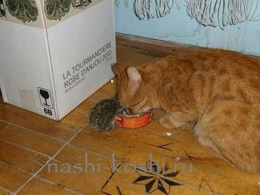 Вот это истории из кошачьей жизни — очень трогательно! Кошка с крысой просто поразила! А больше всего понравилась кошка с ежатами. Интересно всё таки, как она их вылизывает? 🙂
