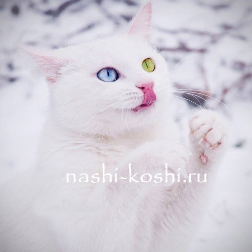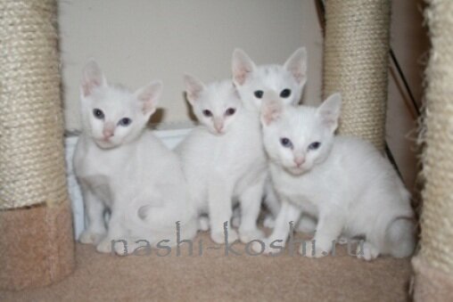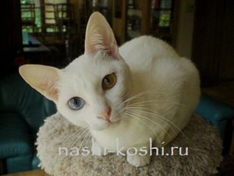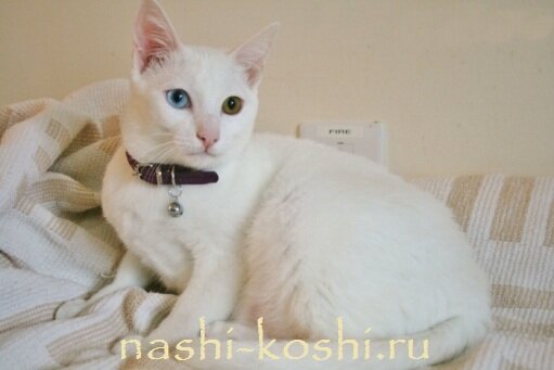 к нам пришёл летом котёнок весь белый с разными глазами голубой и янтарный с небольшим кусочком голубого,решили оставить,когда подрос я стала замечать,что он не такой как наш Мурзик ,осанка важной особы,степенный,терпеливый(у нас ребёнку 5 лет,кот стал его любимцем). Я смотрела на него и думала «царских» кровей наверно,решила посмотреть в интернете и к своему удивлению нашла много похожих кошек на нашего Семиона(так мы его назвали) сын его Сёмкой зовёт. Теперь думаю где ему»невесту» найти бы ,для продолжения породы.