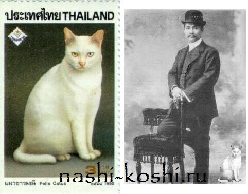 В 1880-х годах Сиам столкнулся с угрозой колонизации Англией и Францией, и будто бы для укрепления отношений Рама V  передал пару тайских кошек силпойнт английскому генеральному консулу в Бангкоке. Эти кошки были представлены Западу, как «Королевские Сиамы», что повысило их статус и сделало сенсацией на Западе. Британское правительство позволило Сиаму сохранить независимость. Только среди поклонников породы као мани до сих популярно мнение, что настоящими королевскими  кошками Сиама являются как раз таки као мани, а король просто схитрил, утаив от Британии своих настоящих любимиц.
