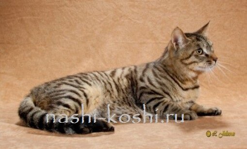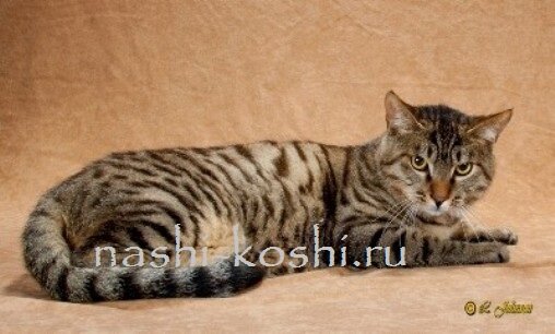 Окрас признается только один: коричневый ломаный табби-макрель (черный тигровый табби). На голове черные полоски, на брюшке темные пятнышки, хвост окрашен темными кольцами, кончик хвоста черный. На груди должна быть как минимум одна непрерывная полоса в форме ожерелья. От внешнего угла глаза и нижней части щек отходят полосы, которые продолжаются к шее.