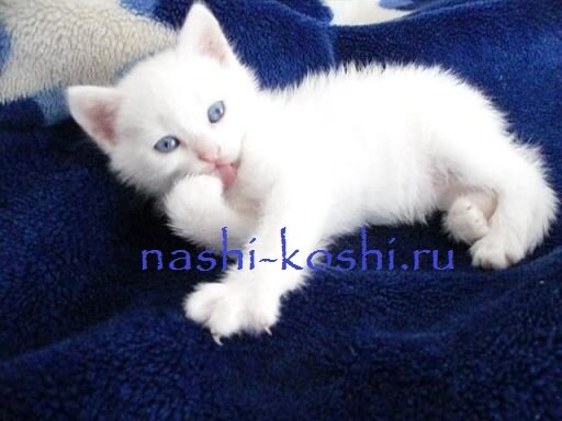 1. Доминирование белого (эпистатически белые кошки) – ген, ответственный за белый окрас кошки и ее голубые глаза символически обозначается буквой «W». Он является доминантным и поэтому только одна его копия необходима для того, чтобы потомство унаследовало эти признаки. Этот ген угнетает возможность продуцирования пигмента. Это означает, к примеру, что у вас имеется генетически черный (или рыжий) кот, но если он является носителем гена W, то его окрас будет замаскирован. Белые кошки с голубыми глазами нередко бывают глухими, так как ген W также влияет на развитие акустических клеток.