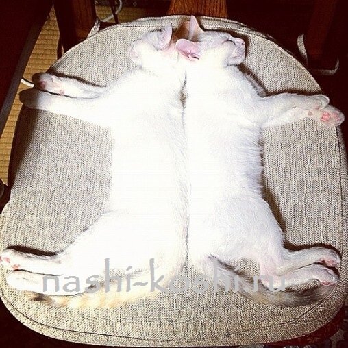 Последние сводки с научного фронта рассказывают нам о странном поведении двух котов в режиме сна. Доктор Тобиас Уинслоу ведущий кошкобиолог и эксперт по кошачьему сну говорит, что даже будучи размещенными в разные стартовые позиции или в отдельных помещениях коты-близнецы Мерри и Пиппин все равно укладываются зеркально.