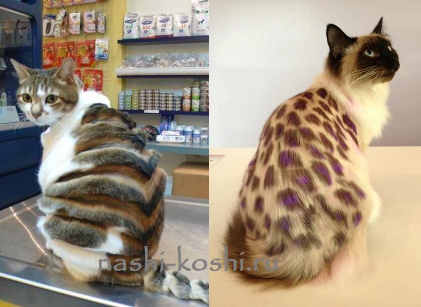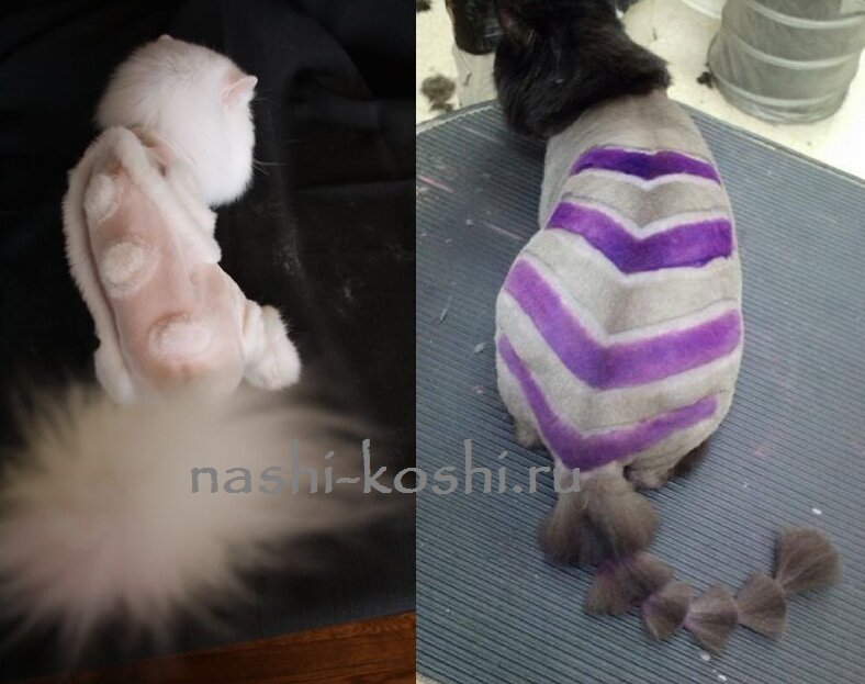 Поскольку кошки гораздо более нетерпеливые существа, их стрижки выглядят намного проще и скромнее, на собаках дизайнеры отрываются по полной.