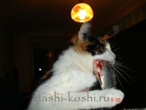 Наша бабушка своих кошек постоянно рыбой кормила, они привыкли и кроме рыбы не ели ничего. Не скажу, чтоб болели или внешне плохо выглядели, но умирали они рано. Не знаю от чего, врач их не смотрел. В среднем года 4-5 жили, не больше. Раньше мы об этом не задумывались, литературы не было, интернета тоже, да и сами были детьми. А вот сейчас вспомнила бабушкиных кошек и думаю — может и правда не стоит рыбой кормить.