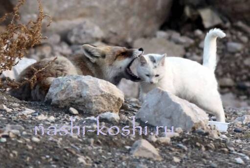 Уже больше года турецкие рыбаки наблюдают за необычной дружбой ванской кошки и лисы, проживающих на берегу озера Ван у села Читорен, находящегося в25 км от города Ван. Турецкая газета Milliyet рассказывает, что кошка и лиса ведут себя как настоящие друзья, вместе играют, едят. Они вместе проводят дни, поедая брошенную рыбаками рыбу, а потом начинают свои игры.