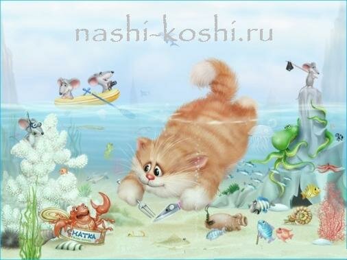 Хотелось посмотреть как кошка ловит рыбу, ведь они не любят воду. А, может, с того корабля и мыши спаслись?