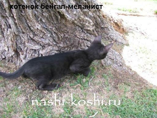 Интересная кошка. Гибкая. У меня кошка родила котят. Один из котят имеет черный окрас с чудесным блеском. Если бы не белые мазки под горлом, на грудке и белое пятно на животе, то — натуральный бенгал.