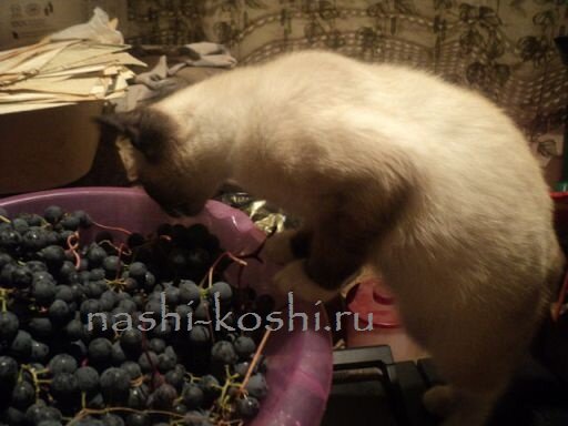 Всё правильно, про виноград не знала… Спасибо!!!ещё нельзя КАЛЬМАР -соседского кота еле откачали ветеринары, покормили не пожалели -не знали, кота спасли… Колбасные изделия тоже нельзя, а яйца -мы даём только перепелиный желток раз в неделю , мясо -курица, телятина говядина качественную,даём сырую -замораживаем, размораживаем и даём, кефир, биокефир, рыбку иногда -корешку приготовленую, травку щипает, мальт пасту beophar -для выгонки шерсти и сухой корм Royal Canin Protein Exigent -другие не ест, пробовала холистики -ни в какую, да что там воопще ничего не воспринимает никакие вкусняшки, влажные консервы,паучи и.т.д. Раньше попрошайничала сыр с голубой плесенью но врач сказала не давать! также и про красную рыбу! Больше не даём, пока росла дополнительно давали витамины и кальций, после прививок врач сказала не давать…. Как-то так у нас сибирская -весёлая, прыгучая, хитрющая, бегущая -гоняет по квартире с бешеной скоростью иногда даже углы не помеха и с такой же скоростью подымается на свой комплекс и обратно… Любит прятки… Здоровья вашим питомцам и вамЗаранее прошу прощения за допущенные ошибки 🙂