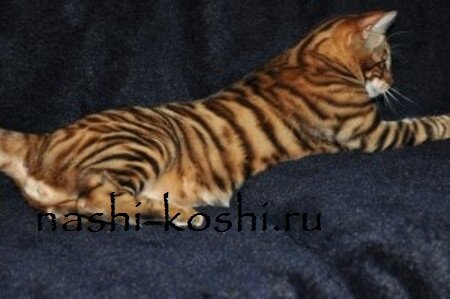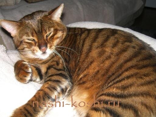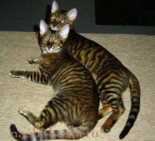 Подушечки лап и кончик хвоста должны быть черными. Полосы вдоль хребта быть не должно. На фото можно видеть, как шерсть тойгера отливает красивым блеском.