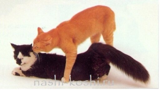 4. Самец часто «педалирует» задними ногами. Такое движение обычно непосредственно предшествует короткому акту совокупления. Лучше подстелить парочке коврик, чтобы лапы кота не скользили по полу.
