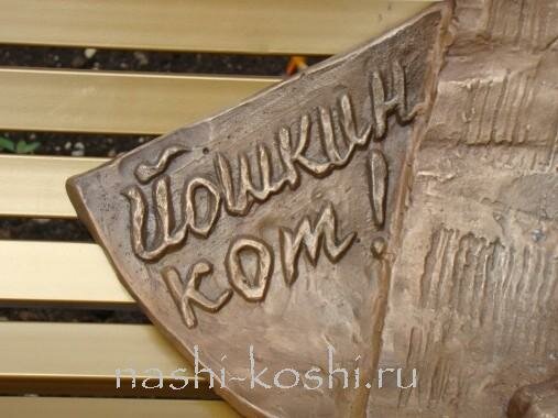 Про Ёшкина кота мы уже знаем, а вот что это за зверь такой Йошкин кот? Это существо, порожденное свободно-ассоциативным мышлением двух йошкар-олинских скульпторов и одного веселого предпринимателя. Сами-то авторы наверняка хотели увековечить в бронзе известный эвфемизм. Почему именно этот, не знаю. Наверное, это наиболее часто употребляемое выражение в Йошкар-Оле. Или, может быть, какое-то русско-марийское ругательство.